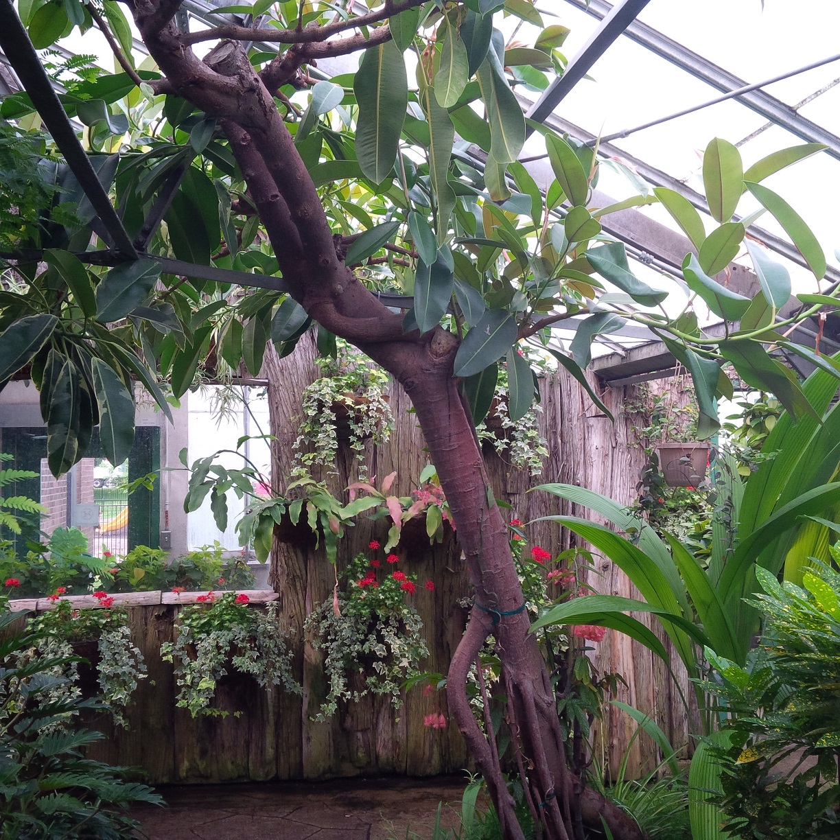 | A Port Jackson fig (Ficus rubiginosa), a species of flowering tree native to eastern Australia, in the Tropical House. |